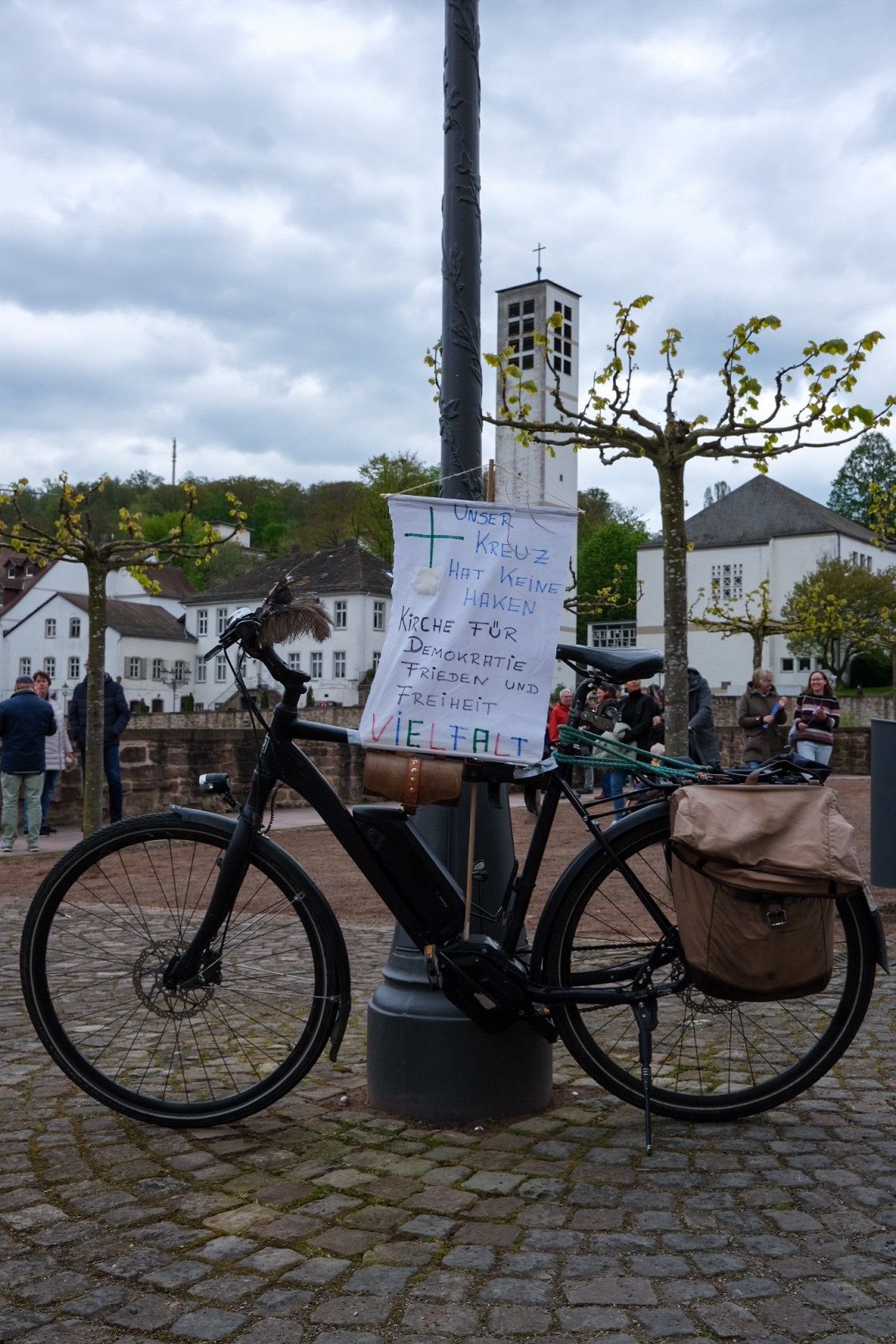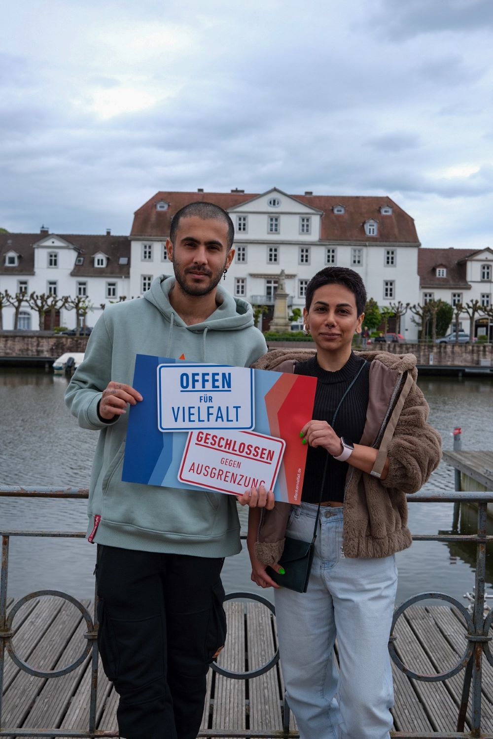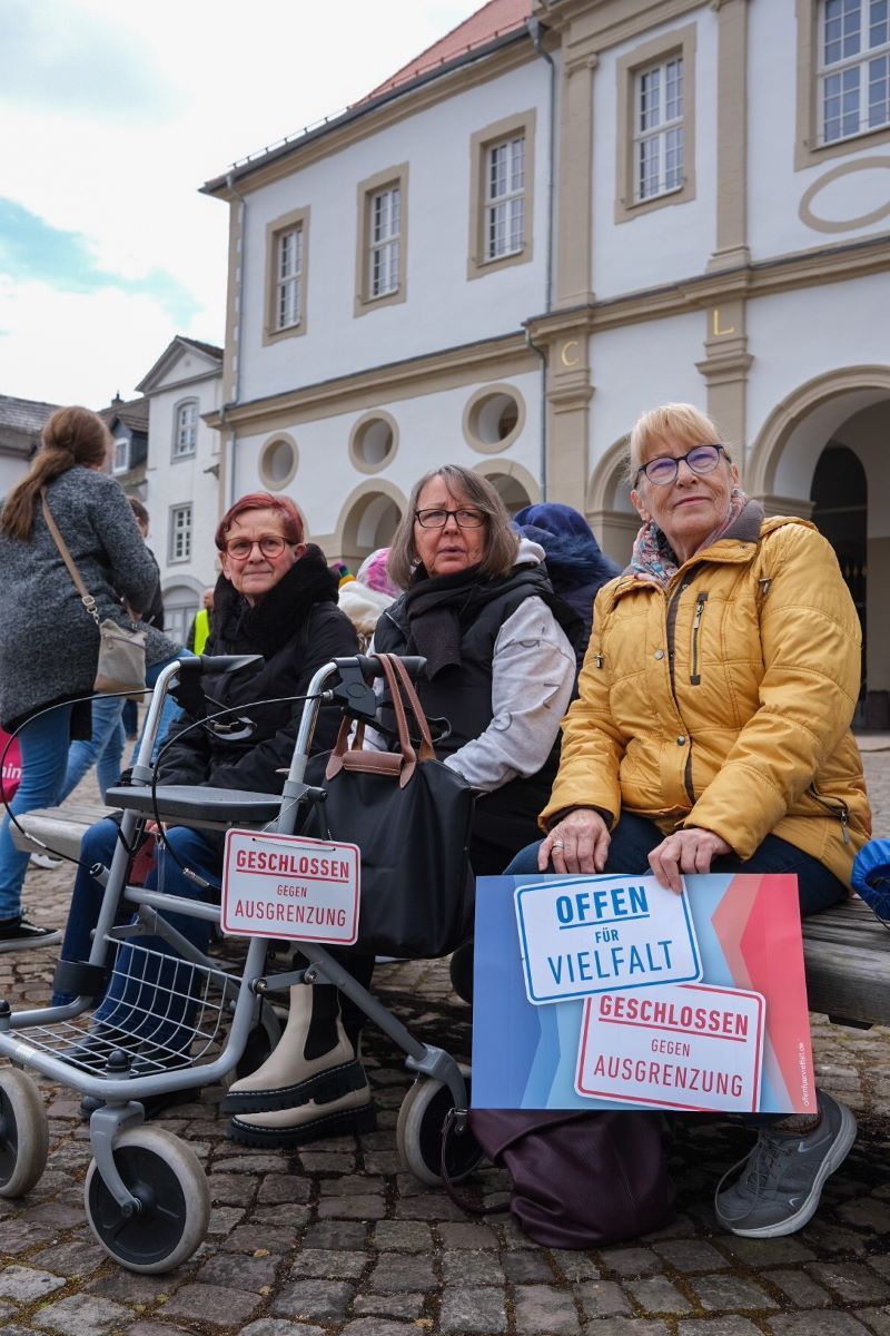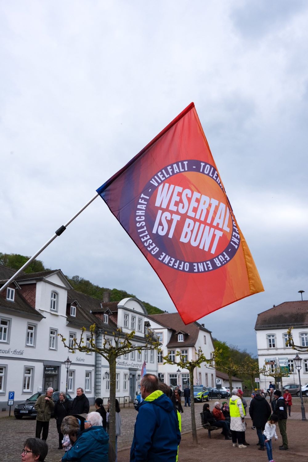 Für die Einwohner*innen von Bad Karlshafen ist das Zeichen einer Menschenkette angesichts der Stadtgeschichte selbstverständlich. Vor 325 Jahren wurde die Stadt für Glaubensflüchtlinge gegründet. Mehr als 250 Menschen kamen um gemeinsam mit „Offen für Vielfalt“ und dem Aktionsbündnis ein Zeichen zu setzen: Sie stehen zusammen und halten einander an den Händen. Für Demokratie und Vielfalt im Dreiländereck – denn ’nie wieder‘ ist jetzt.