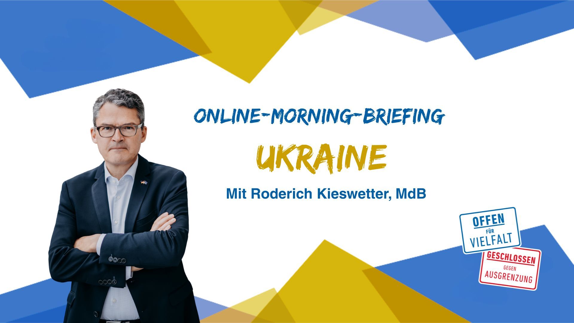 Für eine deutlich entschlossenere Unterstützung der Ukraine hat sich der CDU-Sicherheits- und Verteidigungsexperte Roderich Kiesewetter beim Online-Morning Briefing (23.02.2026) der Demokratie-Initiative Offen für Vielfalt e.V. ausgesprochen. Anlässlich des vierten Jahrestags des Überfalls auf die Ukraine forderte Kiesewetter auch die Lieferung des Waffensystems Taurus, ein Raketensystem mit einer Reichweite von über 500 Kilometern. Russland muss besiegt und aus der Ukraine zurückgedrängt werden, erklärte Kiesewetter: „Die Ukrainerinnen und Ukrainer stützen seit 4 Jahren alleine die europäische Sicherheit. Die Ukraine macht Europa stärker – machen wir die Ukraine stärker und liefern endlich alles, was möglich ist, auch Taurus!“ Als Gast ihres traditionellen Formats „Morning-Briefing“ konnte die Initiative den Bundestagsabgeordneten, der im Auswärtigen Ausschuss tätig ist und die Entwicklungen rund um den russischen Angriffskrieg seit Beginn intensiv begleitet, begrüßen. Das Format, das mehrmals im Jahr stattfindet, bietet Raum für fundierte Einordnung, offene Diskussion und persönliche Einschätzungen von Experten aus erster Hand.
